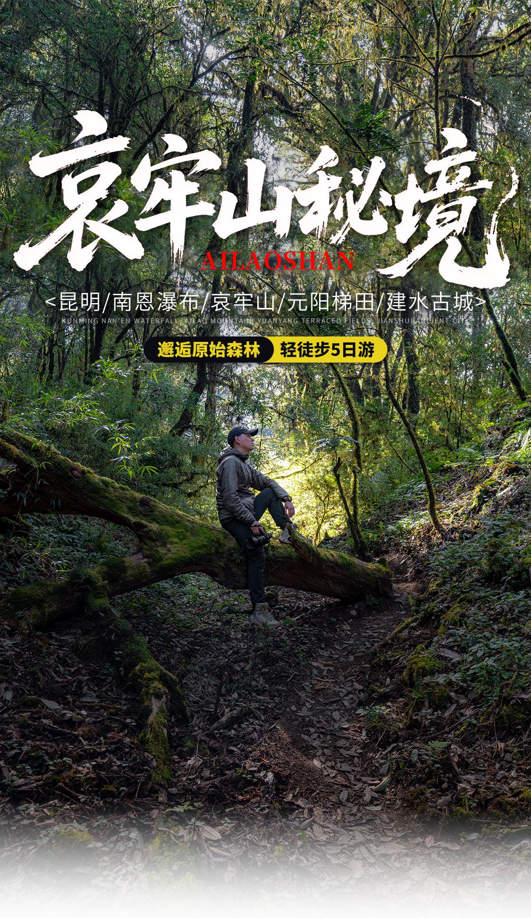 早起奔赴观景台,邂逅 “滇中云海一绝” 的哀牢山云海日出。清晨的山间薄雾氤氲,朝阳刺破云层缓缓升起,金色霞光泼洒在翻涌的云海上,连绵山峦在云海中若隐若现,宛如仙境。稍作休整后,正式开启此行重头戏 —— 哀牢山穿越徒步!这条线路地处云贵高原与横断山脉过渡地带,是哀牢山 “茶王古道” 的精华分支。这里藏着未被过度开发的原始森林,常年云雾缭绕,幽谷、奇石、古木、苔藓、清泉错落交织,美景与神秘在此共生。徒步结束后,驱车前往墨江,入住当地酒店。