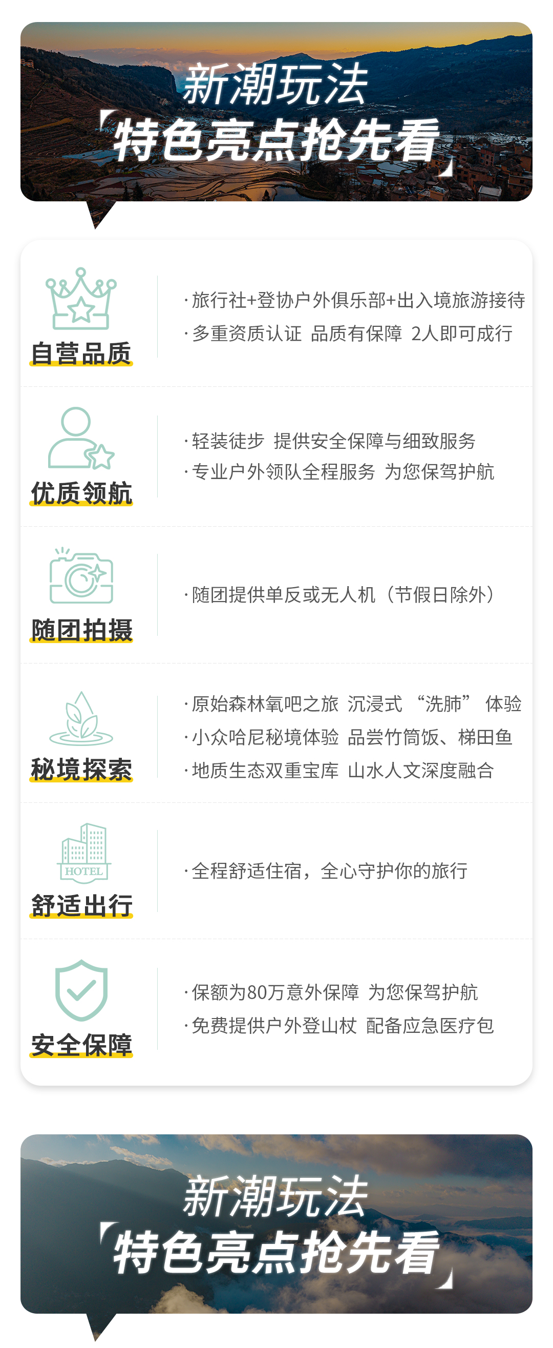 1、这是一条探索哀牢山秘境、赏梯田盛景、寻建水古韵的深度徒步线路,山水人文双解锁,拒绝走马观花,一场有温度的滇南徒步之旅。