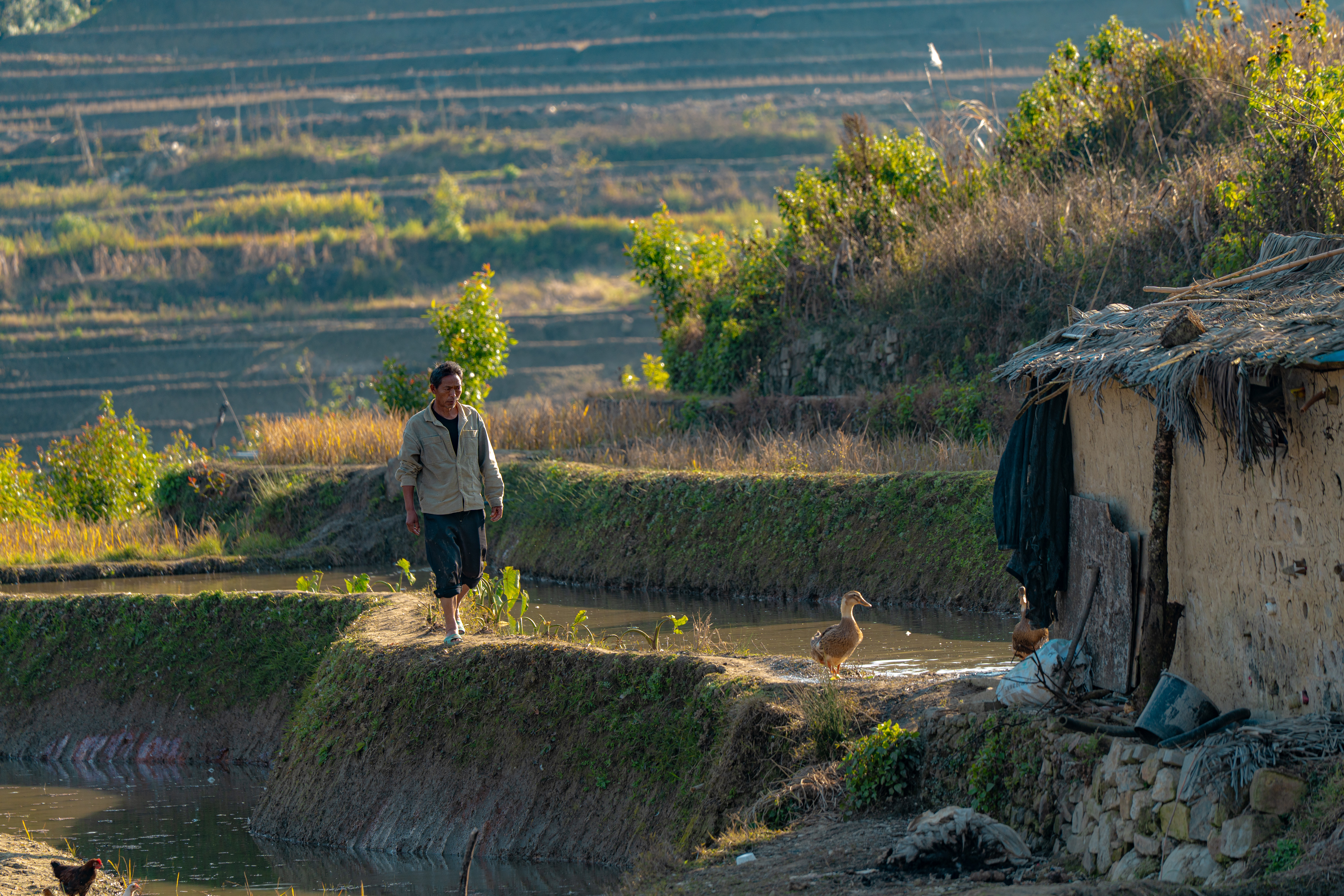 早餐后驱车前往哀牢山南段标志性景观——元阳梯田。徒步踏入这片 “大地雕塑”,陡峭田埂需步步留心,沿途可见哈尼族人赶鸭牧牛、田间耕作的生活图景,千年农耕传承在此静静流淌。走进哈尼村寨,“森林、水系、山寨、梯田” 的完整生态体系与古朴蘑菇房相映成趣。徒步结束后在坝达观景台,静待日落盛景,金色余晖洒满层层田垄,每一块梯田都化作闪耀的金鳞,漾着温暖耀眼的光芒。之后前往当地酒店入住。